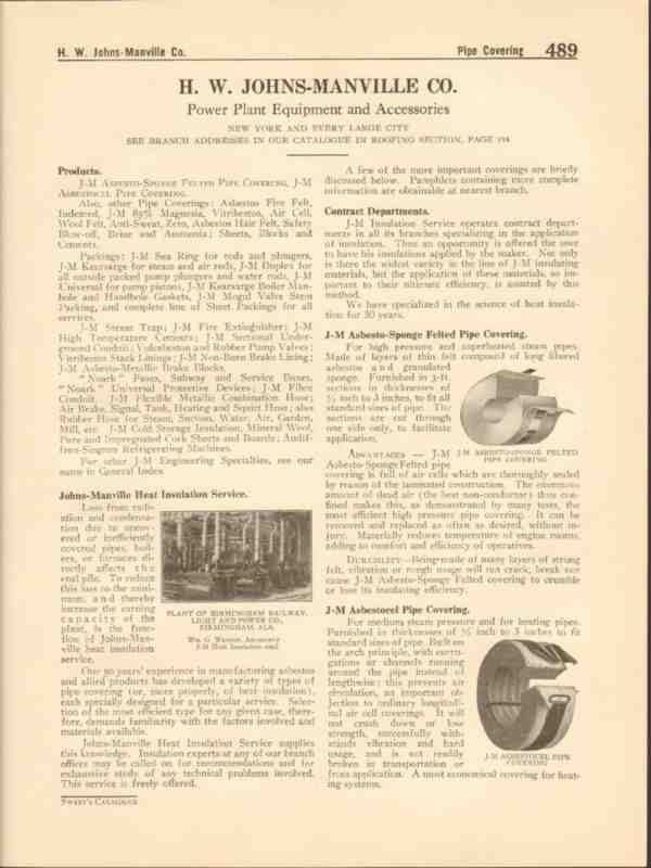 H W Johns-Manville Company 1916 Vintage Catalog Insulation Asbestos