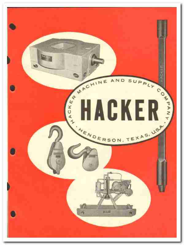 Original 1959 Oil and Gas trade vintage catalog for HACKER MACHINE AND SUPPLY COMPANY. Main office and plant was located in Henderson, TX. (Since 1919).
