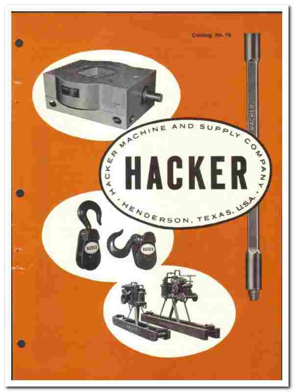 Original 1974 Oil and Gas trade vintage catalog for the HACKER MACHINE & SUPPLY COMPANY. Main office and plant were located in Henderson, TX. (Since 1919).