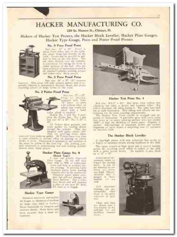 Hacker Mfg Company 1930 vintage printing catalog proof test press