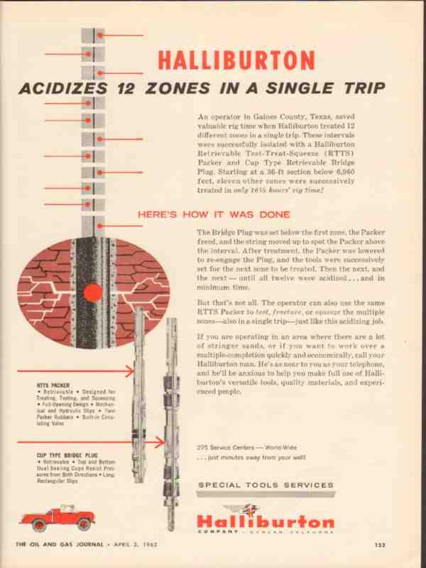 Halliburton Company 1962 Vintage Ad Oil Acidizes 12 Zones Single Trip