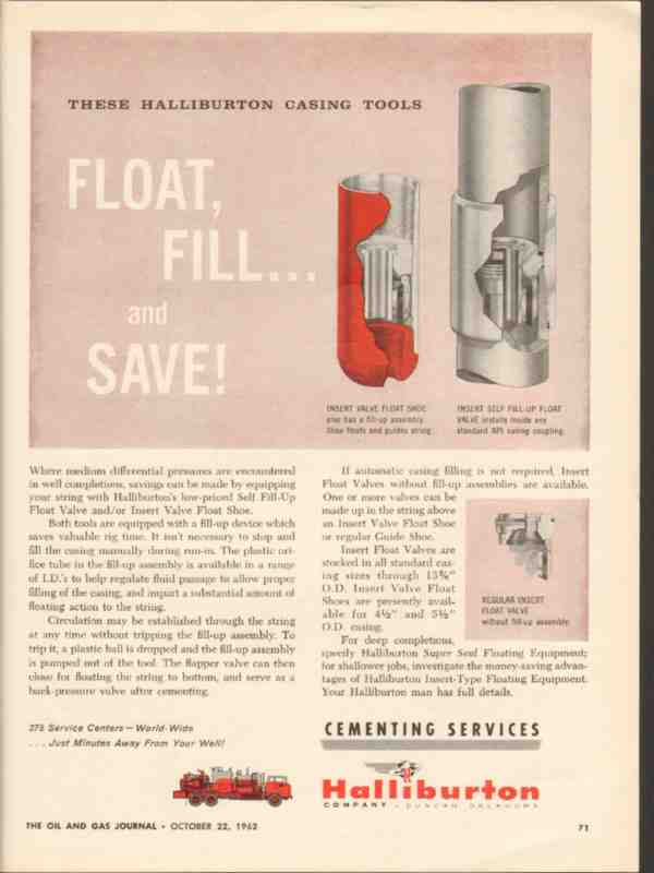 Halliburton Company 1962 Vintage Ad Oil Casing Tools Float Fill Save