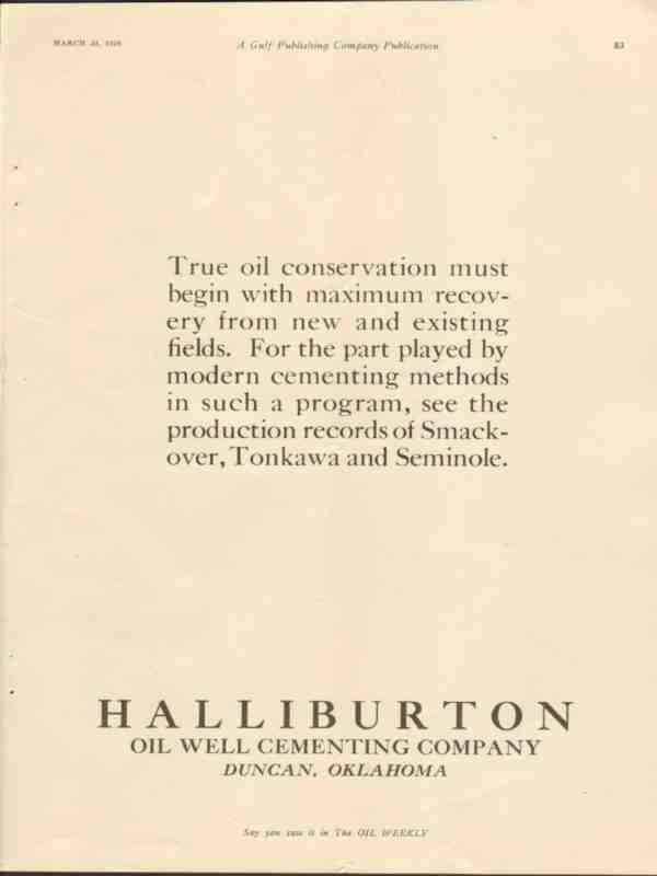 Halliburton Oil Well Cementing Company 1928 Vintage Ad Conservation