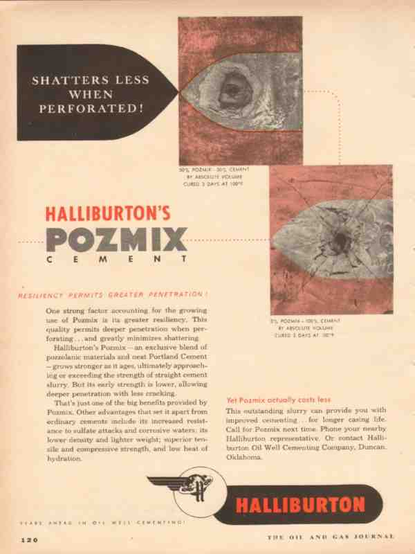 Halliburton Oil Well Cementing Company 1953 Vintage Ad Pozmix Shatters