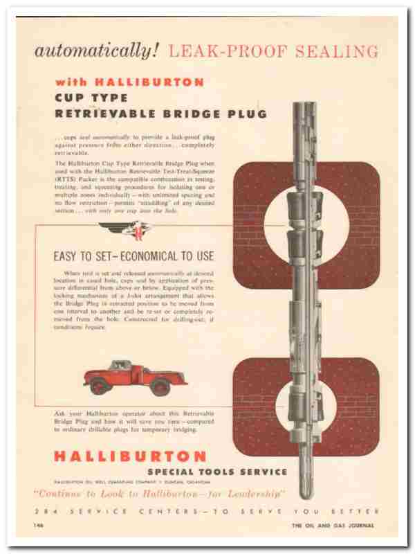 Halliburton Oil Well Cementing Company 1959 Vintage Ad Leak-Proof Plug