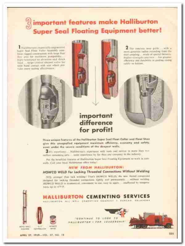 Halliburton Oil Well Cementing Company 1959 Vintage Ad Seal Floating