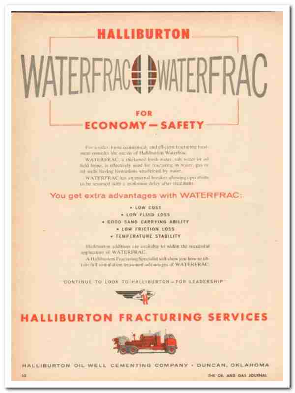 Halliburton Oil Well Cementing Company 1959 Vintage Ad Waterfrac