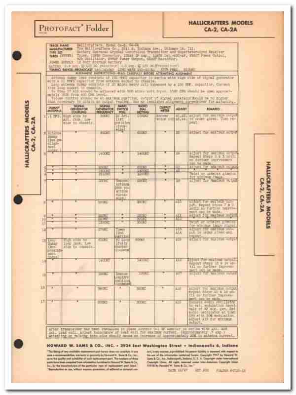 hallicrafters model ca-2 ca-2a 7-tube radio sams photofact manual