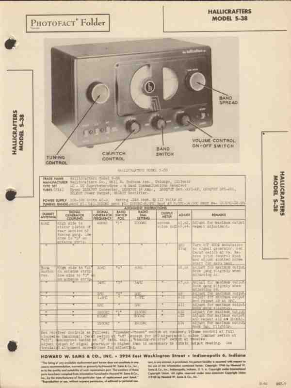hallicrafters model s-38 4 band radio receiver sams photofact manual
