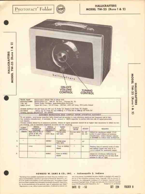 hallicrafters model tw-25 am radio receiver sams photofact manual