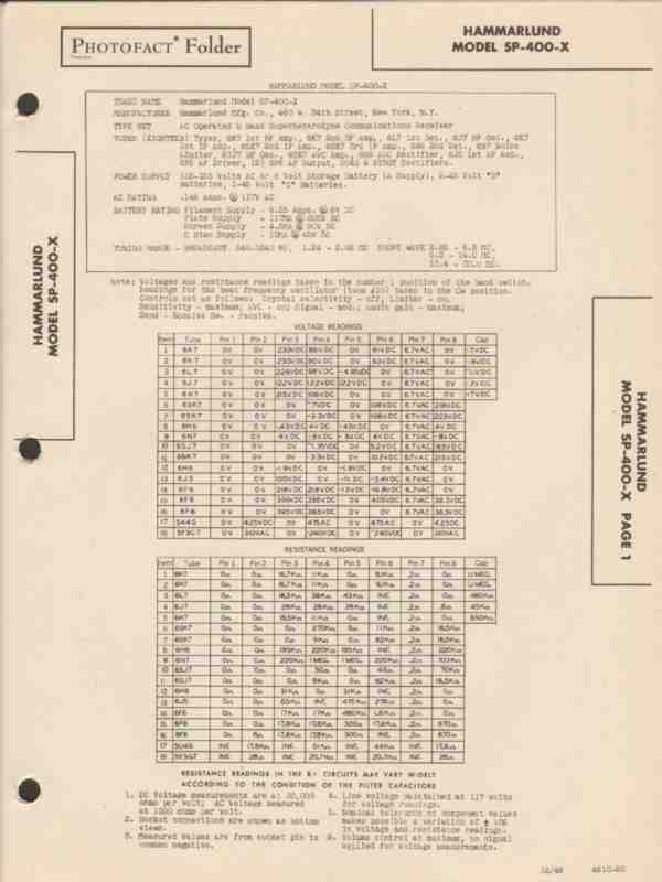 hammarlund model sp-400-x 5 band radio receiver sams photofact manual