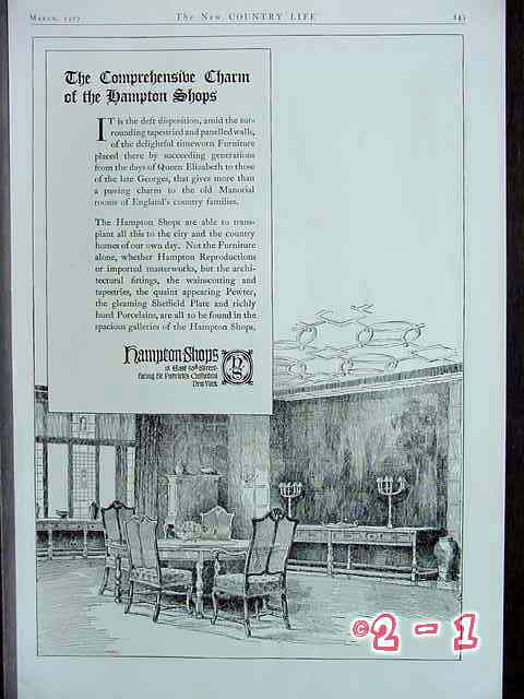 hampton shops 1917 furniture tapestries pewter porcelain vintage ad