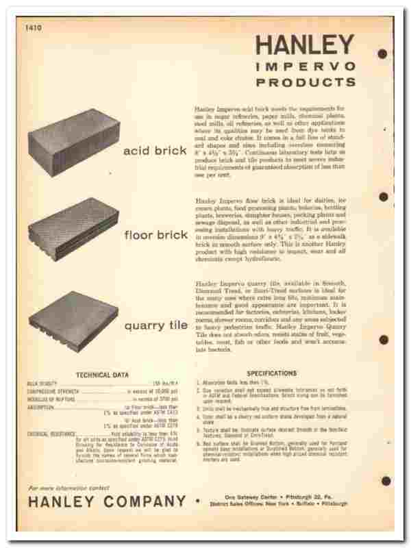 Hanley Company 1948 vintage brick catalog chemical tile Impervo