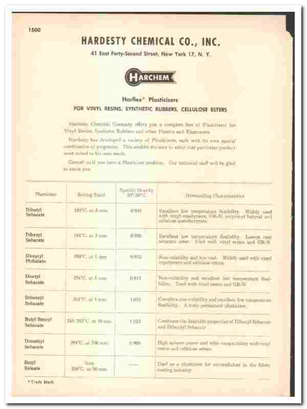 Hardesty Chemical Company 1948 vintage catalog Harflex plasticizers