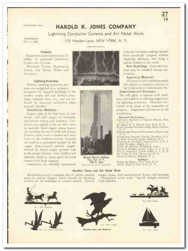 Harold K Jones Company 1938 Vintage Catalog Lightning Conductor System