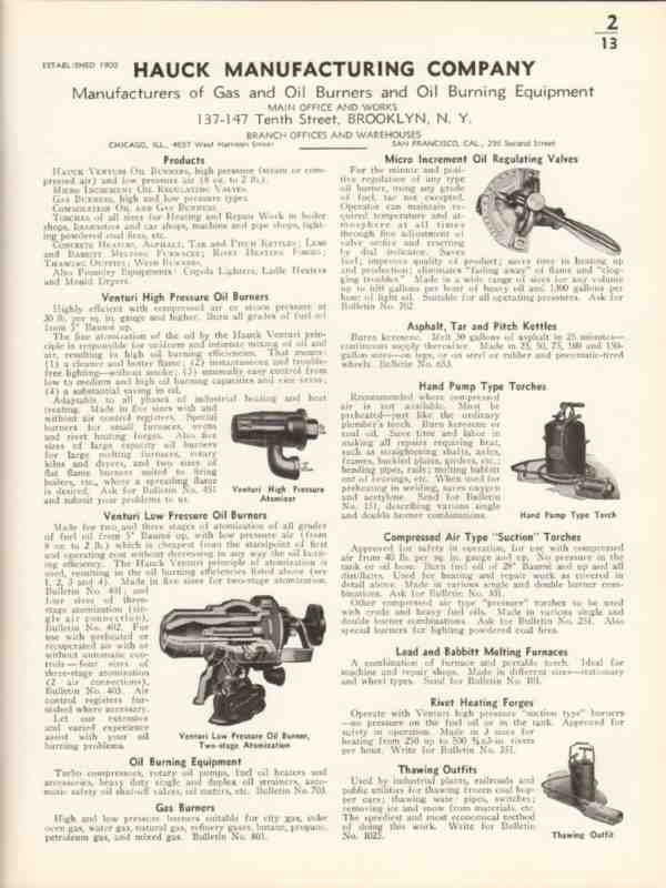 Hauck Mfg Company 1941 vintage industrial catalog gas oil burners