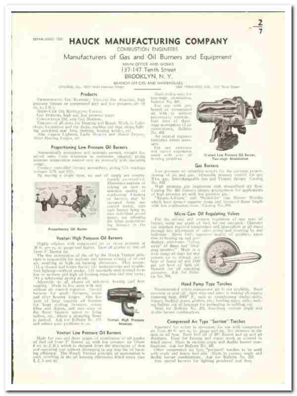 Hauck Mfg Company 1941 vintage industrial catalog gas oil burners