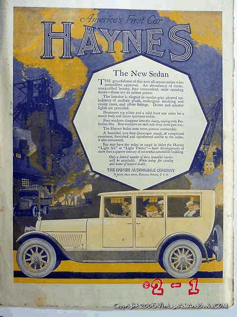 Original vintage magazine ad, THE HAYNES AUTOMOBILE COMPANY. America's First Car. The New Sedan. Old 1918 car advertisement. Would display nicely matted and framed.