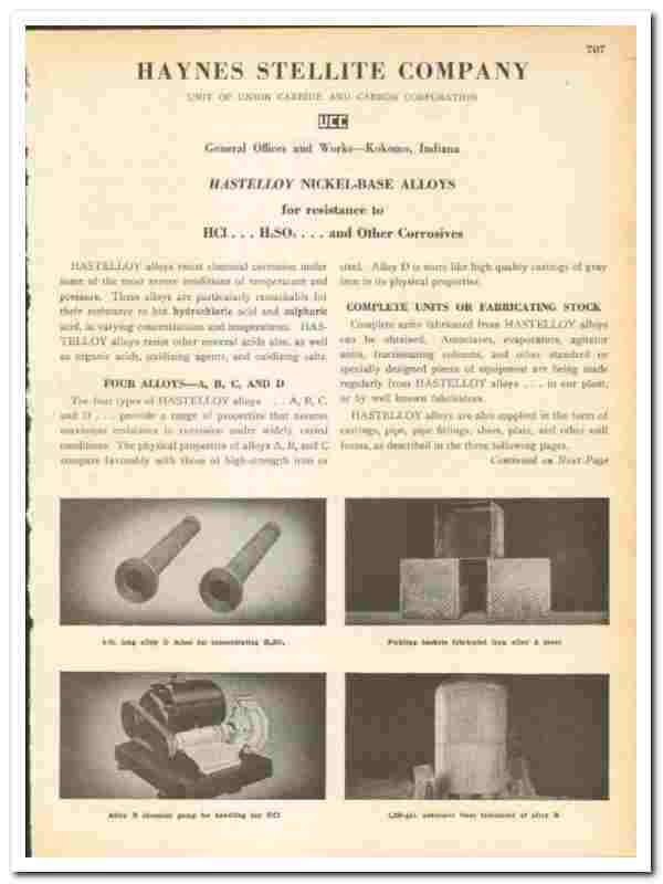 Haynes Stellite Company 1945 vintage industrial catalog Hastelloy