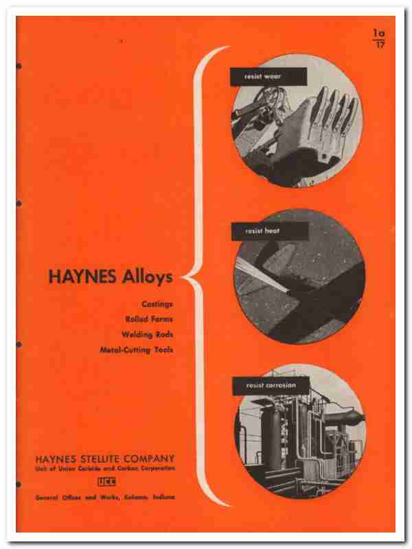 Haynes Stellite Company 1947 vintage industrial catalog Hastelloy