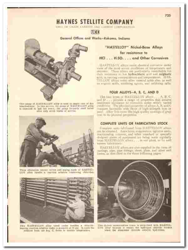 Haynes Stellite Company 1947 vintage industrial catalog Hastelloy