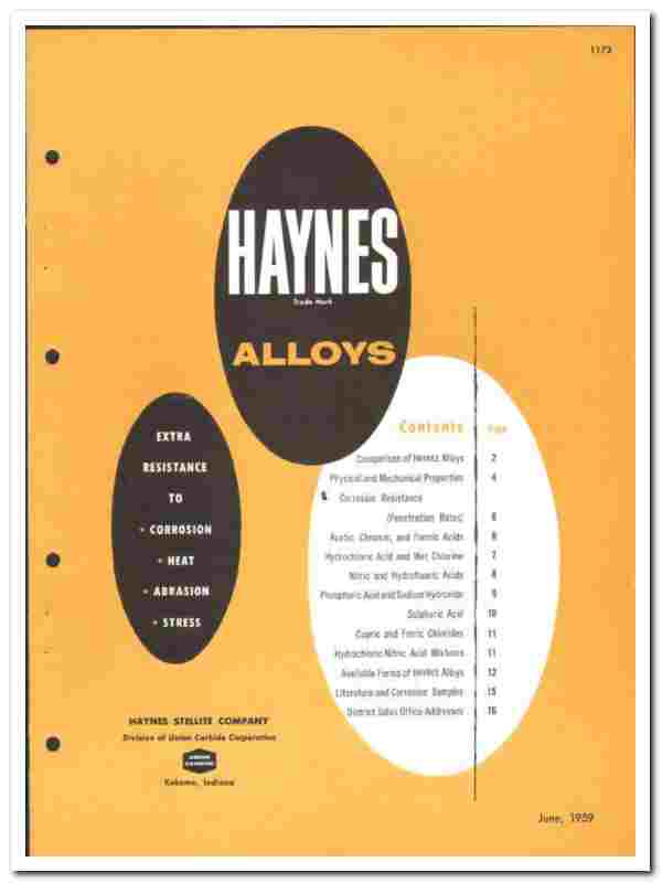 Manufacturers of Haynes Alloys. 'Extra Resistance to Corrosion, Heat, Abrasion and Stress'.