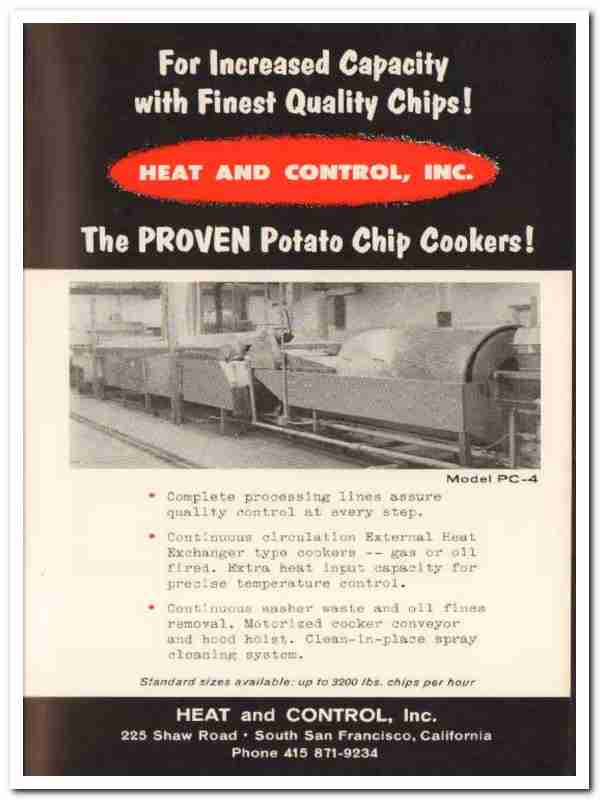 heat and control inc 1967 potato chip cooker snack food vintage ad