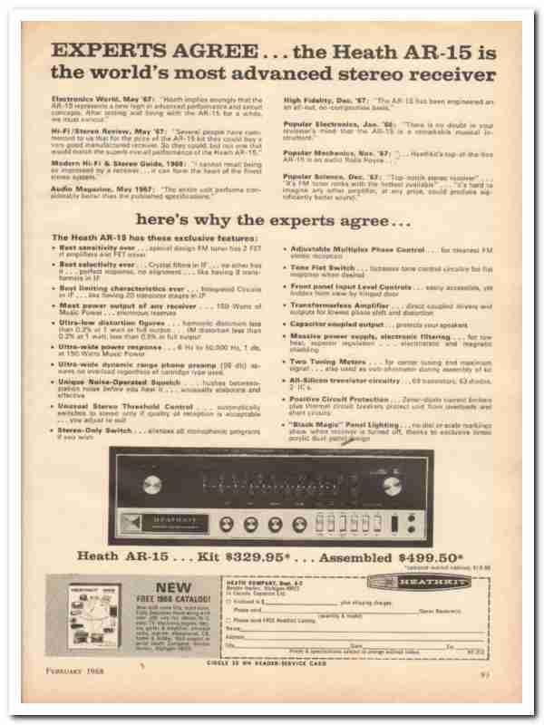 heath company 1968 heathkit ar-15 advanced stereo receiver vintage ad