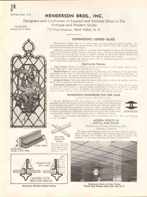 henderson bros. inc 1938 leaded stained glass windows vintage catalog