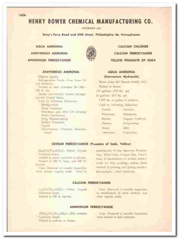 Henry Bower Chemical Mfg Company 1948 vintage catalog ammonia