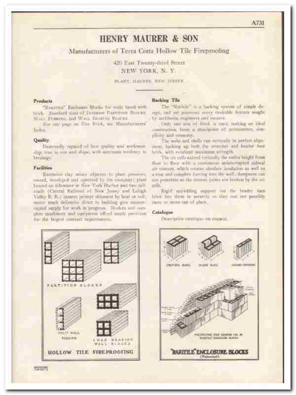 Henry Maurer Son Company 1931 Vintage Catalog Tile Terra Cotta Hollow
