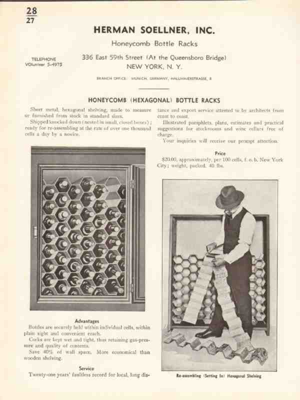 Herman Soellner Inc 1938 Vintage Catalog Wall Honeycomb Bottle Racks