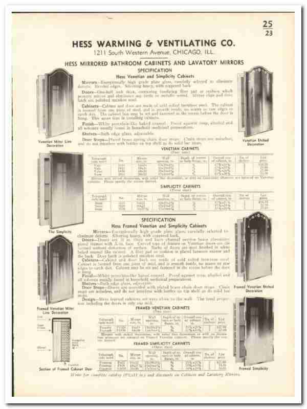 Hess Warming Ventilating Company 1935 vintage bathroom catalog cabinet