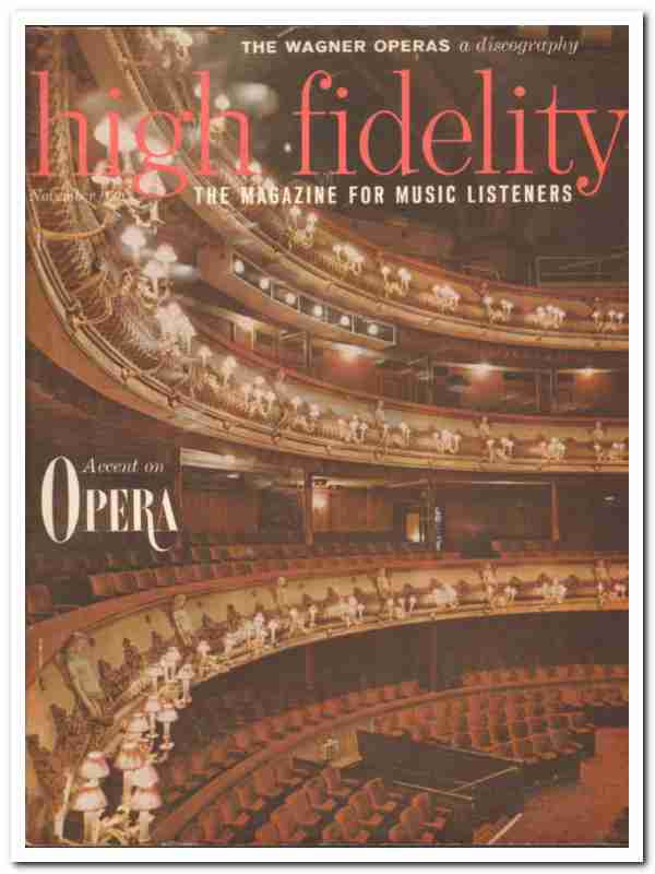 Original vintage stereo magazine cover for HIGH FIDELITY. Accent on Opera. November 1961 cover only. The Magazine for Music Listeners. A nice interior view of an opera house