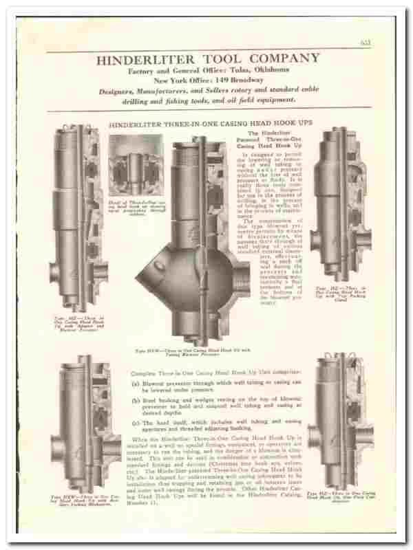 Products include the Hinderliter Three-In-One Casing Head Hookups, Two-In-One Casing Head Hookups, Hinderliter Casing Supports & Packing Heads, Hinderliter Mildred Tubing Supports, Hinderliter Rotary Overshot, Hinderliter Rotary Tool Joints and the Hinderliter Split Casing Rings, all are fully featured.