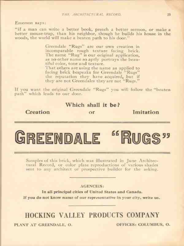 hocking valley products company 1913 greendale rugs bricks vintage ad