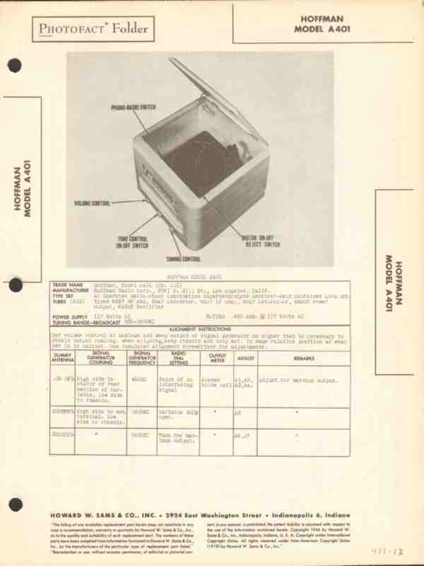 hoffman model a401 am radio receiver phonograph sams photofact manual
