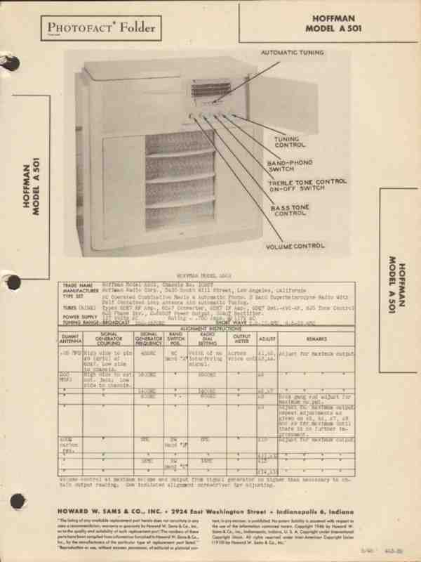 hoffman model a501 am sw radio phonograph sams photofact manual