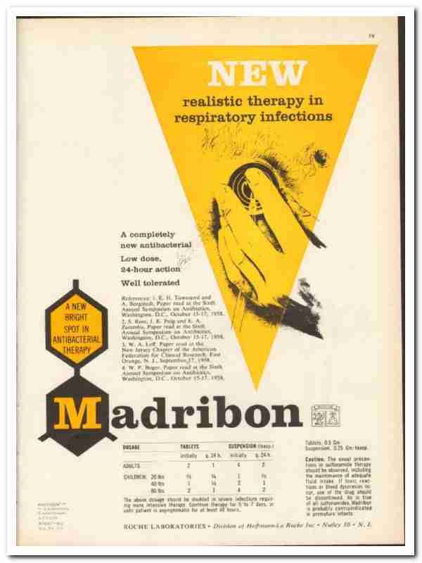 Hoffmann-La Roche Inc 1959 vintage medical ad Madribon antibacterial