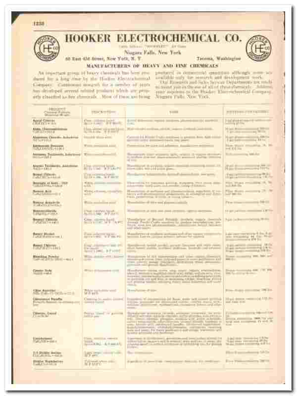 Original 1942 industrial chemical trade vintage catalog for the HOOKER ELECTROCHEMICAL COMPANY. Main office and plant were located in Niagara Falls, NY.