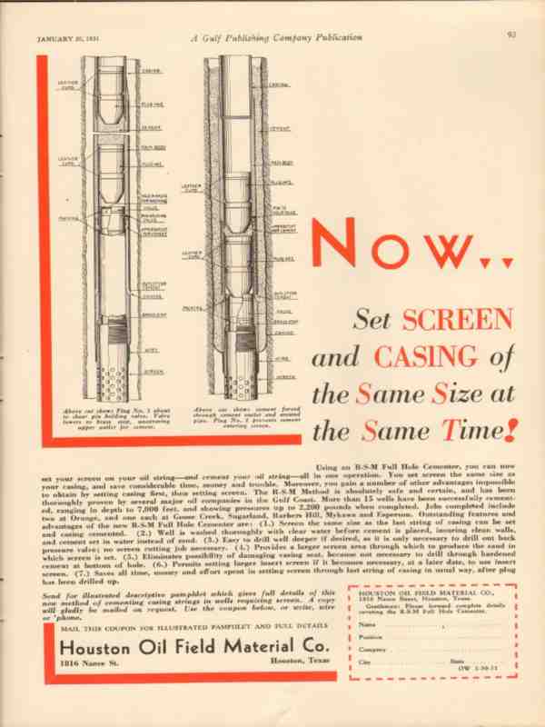 Houston Oil Field Material Company 1931 Vintage Ad Screen Casing Now