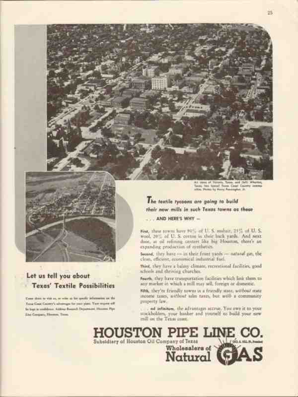 houston pipe line company 1947 victoria wharton tx textile vintage ad