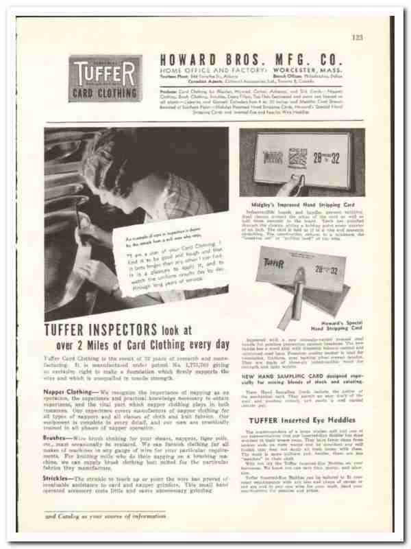 Howard Bros Mfg Company 1948 vintage textile ad Tufferized Card Cloth