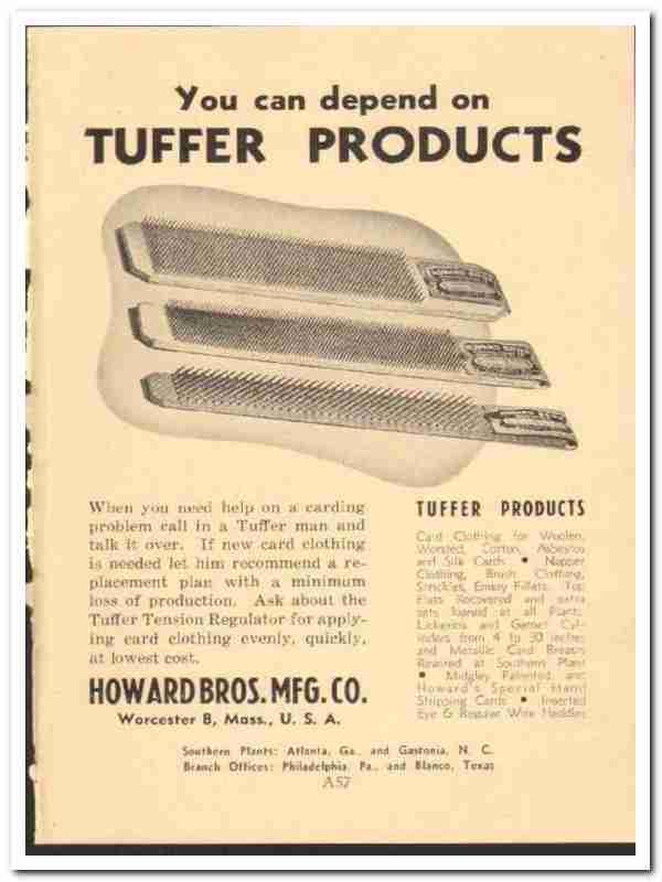 Howard Bros Mfg Company 1948 vintage textile ad Tufferized Card Cloth
