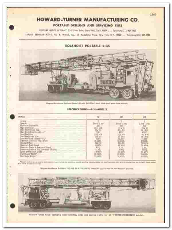 Products include Portable Drilling and Servicing Rigs. The Rolahoist Portable Rigs are fully featured.