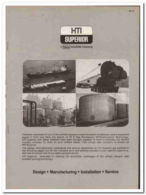 Original 1984 Oil and Gas trade vintage catalog for HTI-SUPERIOR, INC. (A Berry Industries Company). Main office and plant was located at 10847 South Painter Avenue, Santa Fe Springs, CA.