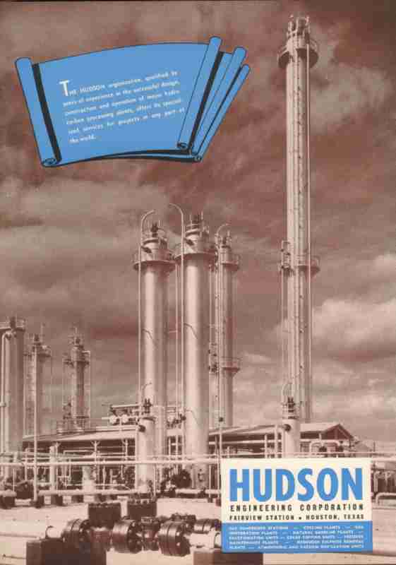 Original oil and gas trade magazine vintage ad for HUDSON ENGINEERING CORPORATION. Main office and factory was located in Fairview Station, Houston, TX. Design, Construction, and Operation of Hydrocarbon Processing Plants. Unique 1951 old petroleum refinery magazine advertisement would look fantastic matted and framed.