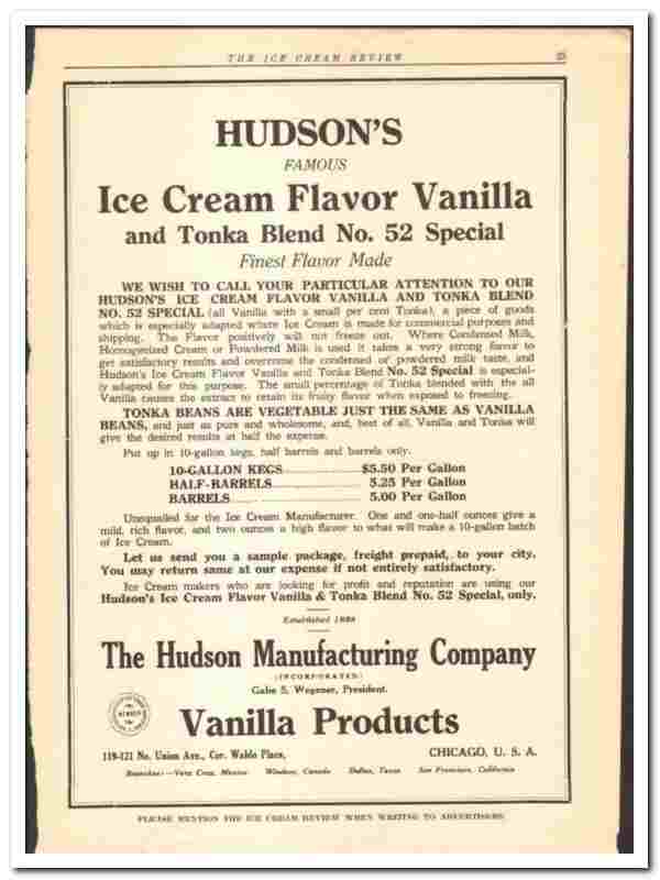 Hudson Mfg Company 1920 vintage ice cream ad vanilla flavor products