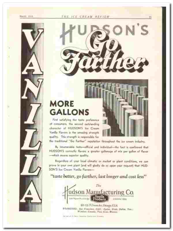 Hudson Mfg Company 1920 vintage ice cream ad vanilla flavor products