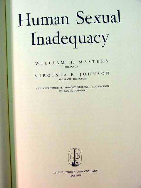 Hard covered book titled HUMAN SEXUAL INADEQUACY by William H Masters and Virginia E Johnson. First Edition, Fifth Printing, 1970, 467 pages. ISBN 0316549851